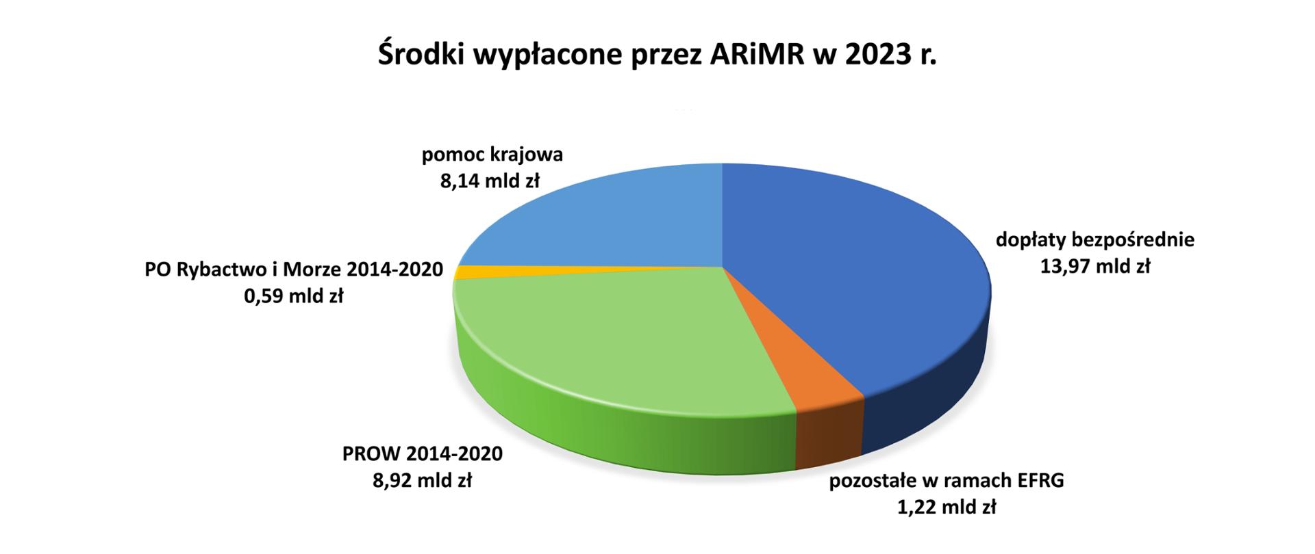 Tradycyjnie największą część przekazanych w trakcie kończącego się roku funduszy stanowią płatności bezpośrednie – 13,97 mld zł to suma środków przekazanych rolnikom od 1 stycznia 2023 r. w ramach dwóch kampanii (2022 i 2023). Z budżetu unijnego pochodzi oprócz tego: 8,92 mld zł, które trafiło do rolników i mieszkańców obszarów wiejskich w ramach dofinansowania z PROW 2014-2020; ponad 1,22 mld zł z Europejskiego Funduszu Rolniczego Gwarancji i 0,59 mld zł – Program Operacyjny „Rybactwo i Morze” 2014-2020. Znaczący udział w puli zrealizowanych przelewów mają w tym roku wypłaty z tytułu pomocy krajowej, które wyniosły 8,14 mld zł. To z tych środków finansowana była większość naborów skierowanych do poszkodowanych przez skutki trwającej wojny producentów rolnych i przedsiębiorców.