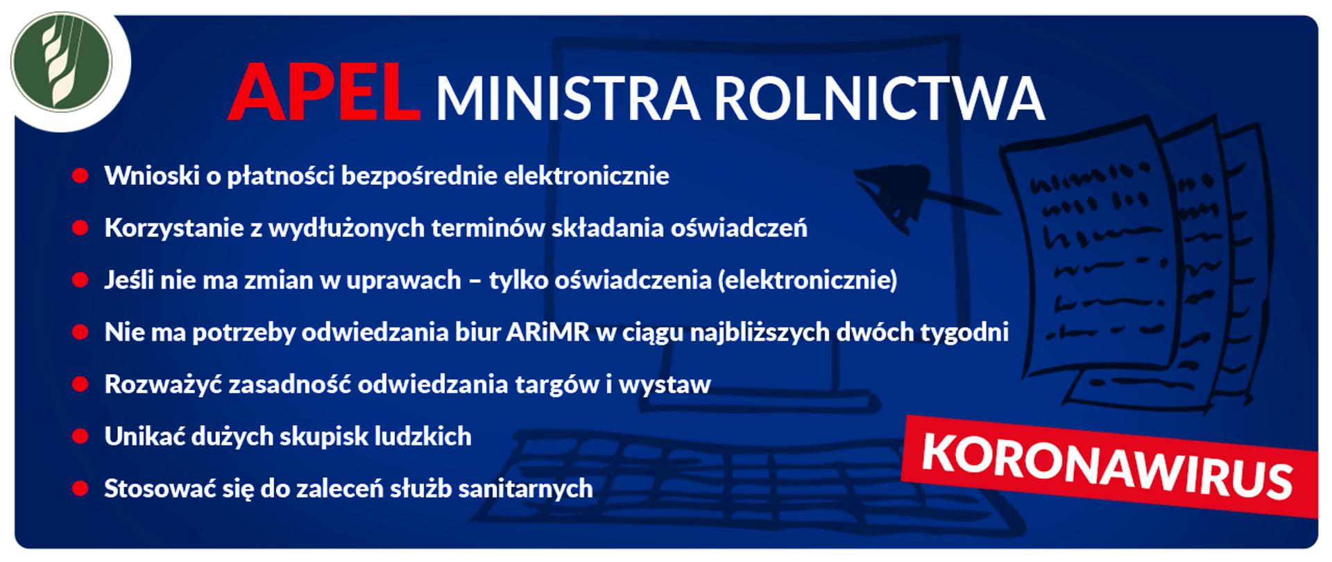 Apeluję do rolników, aby wnioski o płatności bezpośrednie składali elektronicznie. Proszę o korzystanie z wydłużonych terminów składania oświadczeń i nie przychodzenie do biur Agencji Restrukturyzacji i Modernizacji Rolnictwa. Przypominam, że jeżeli nic się nie zmieniło w uprawach wystarczy złożenie oświadczenia. Nie ma zatem potrzeby, by w ciągu najbliższych dwóch tygodni przychodzić do biur agencji.
