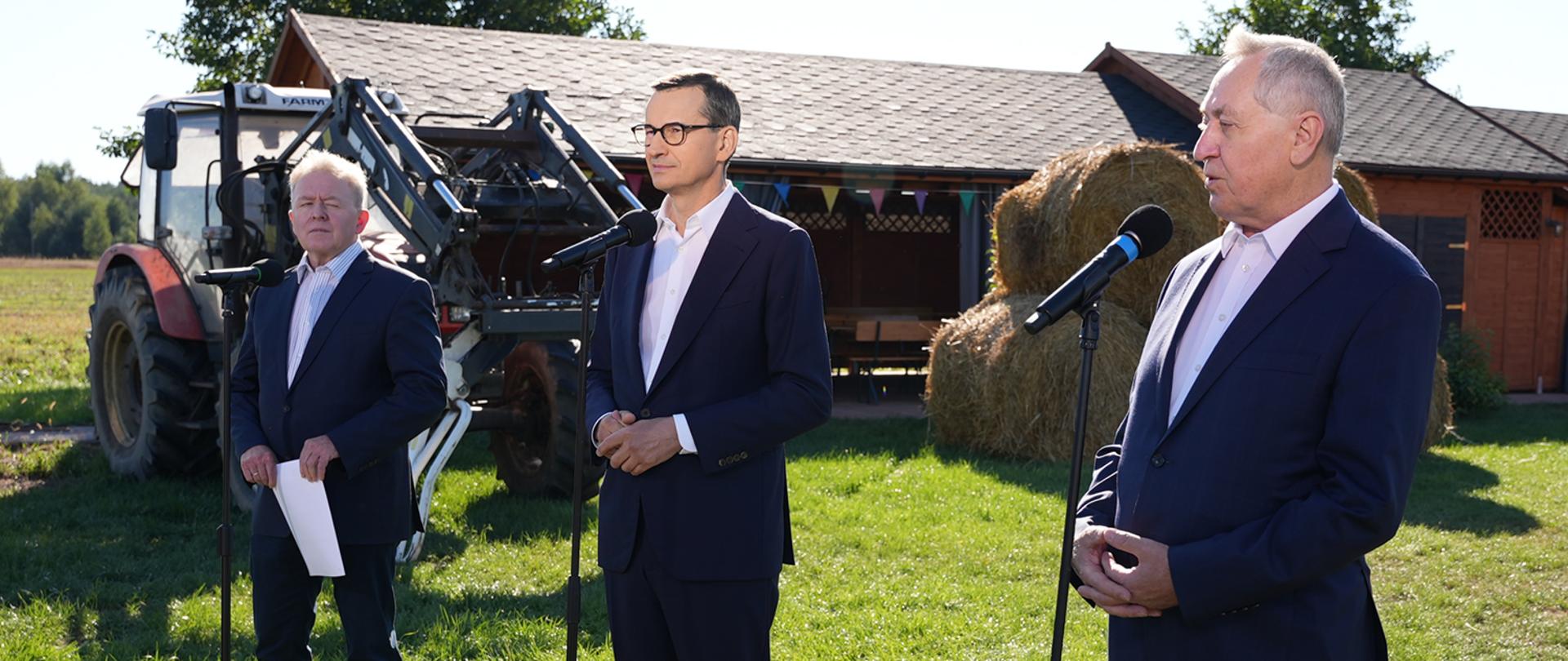W Kolonii Pogorzel koło Osiecka odbyła się dziś wspólna konferencja prasowa premiera Mateusza Morawieckiego, wicepremiera, ministra rolnictwa i rozwoju wsi Henryka Kowalczyka oraz komisarza ds. rolnictwa Unii Europejskiej Janusza Wojciechowskiego w sprawie zatwierdzenia Planu.