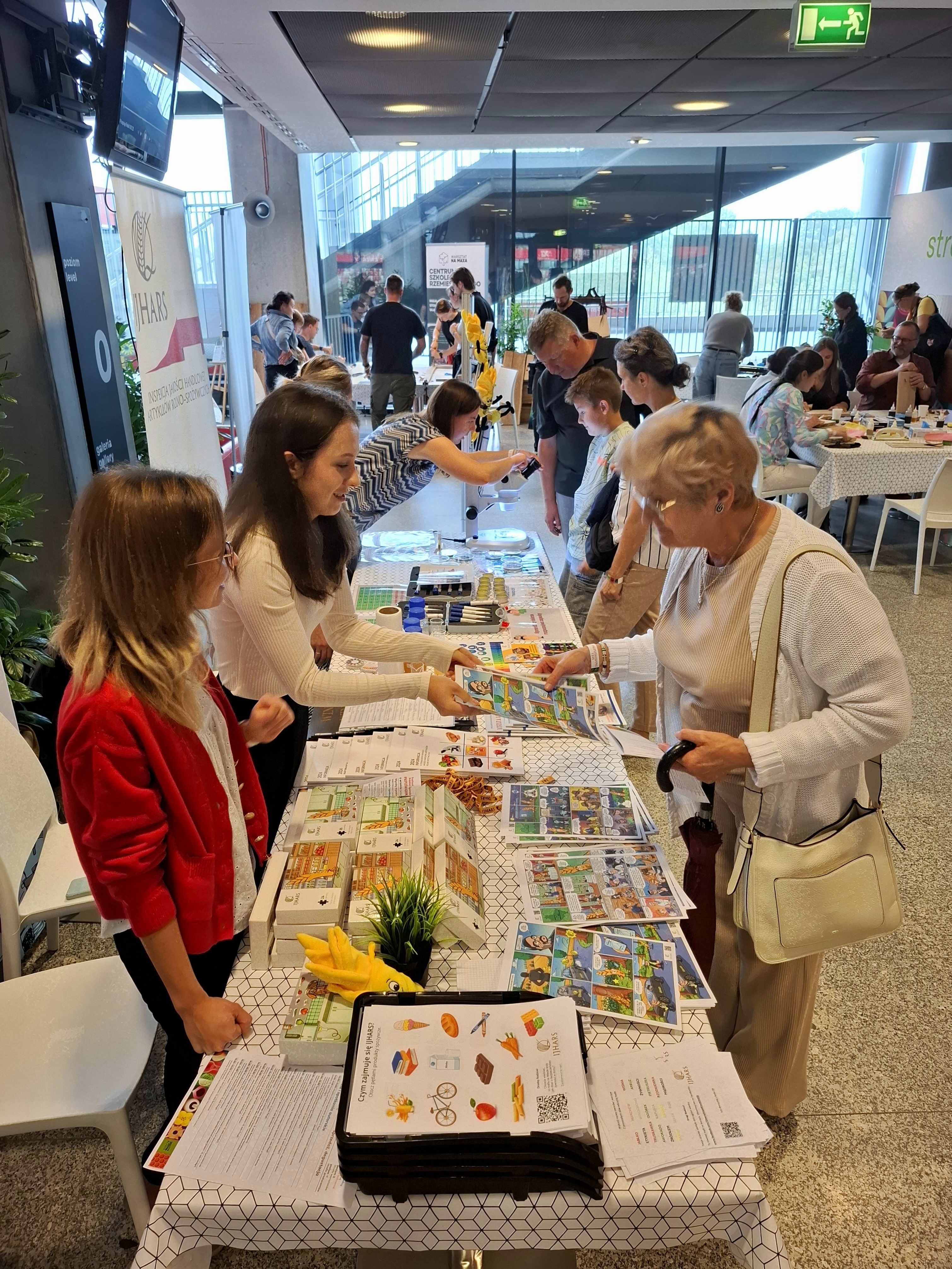 IJHARS przygotowała swoje edukacyjne stoisko, na którym oferowała nie tylko materiały informacyjne o działalności IJHARS podane w przyjaznej formie kolorowych folderów, publikacji czy komiksów. Ogromnym powodzeniem cieszyła się prezentacja naszych możliwości laboratoryjnych dzięki chemicznych zagadkom zorganizowanym przez pracowników laboratoriów IJHARS oraz stoliczek plastycznych z układankami i kolorowankami prezentującymi przygody naszej inspekcyjnej maskotki – Kłosa Złotowłosa.