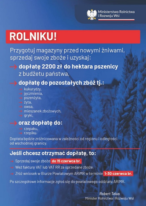 - Sprzedać swoje zboże do 15 czerwca 2023 r.