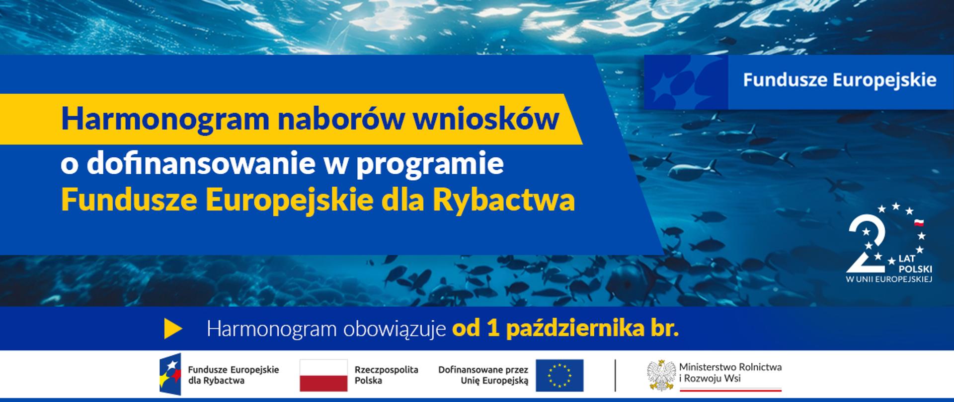 Przypominamy, że od 1 października 2024 r. obowiązuje zaktualizowany harmonogram naborów wniosków o dofinansowanie w programie Fundusze Europejskie dla Rybactwa.