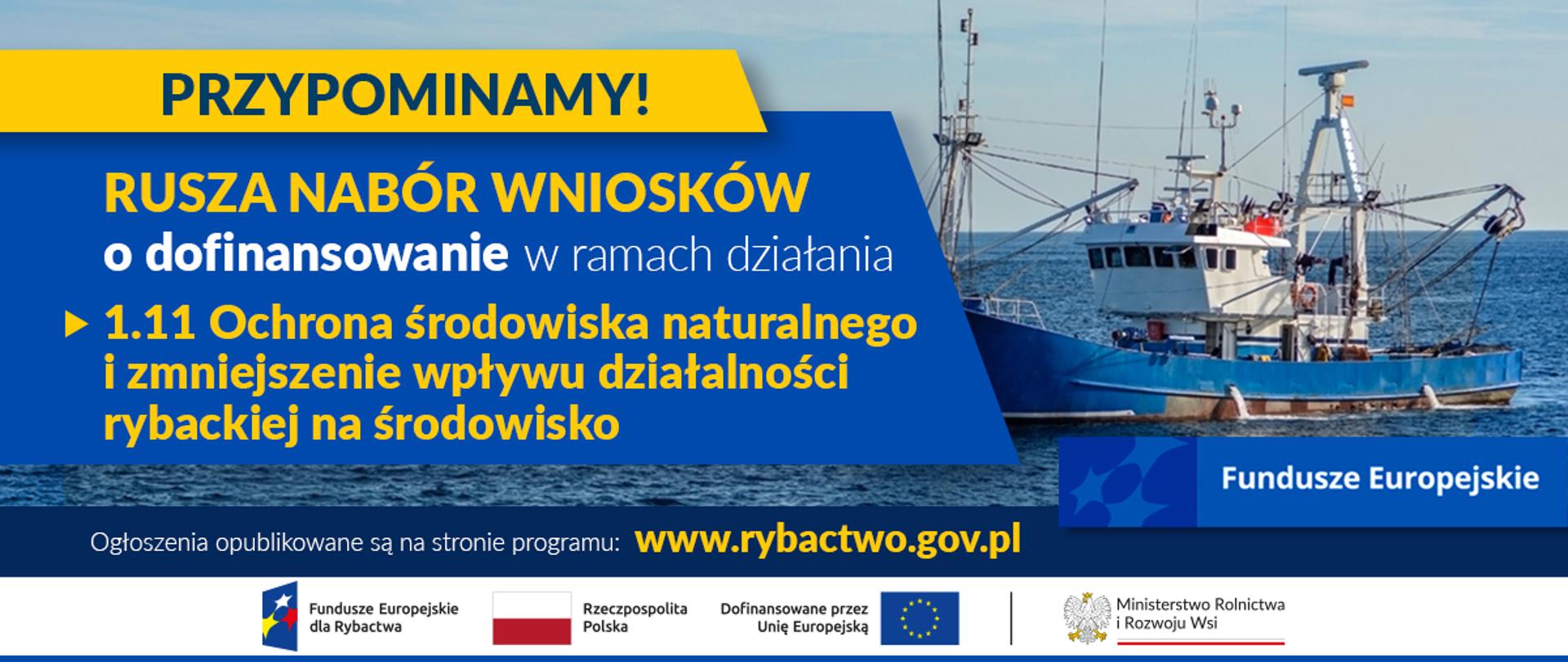 Przypominamy, że od 28 lutego 2025 r. będzie można składać wnioski o dofinansowanie w ramach działania 1.11 Ochrona środowiska naturalnego i zmniejszenie wpływu działalności rybackiej na środowisko, programu Fundusze Europejskie dla Rybactwa na lata 2021-2027 (FER).