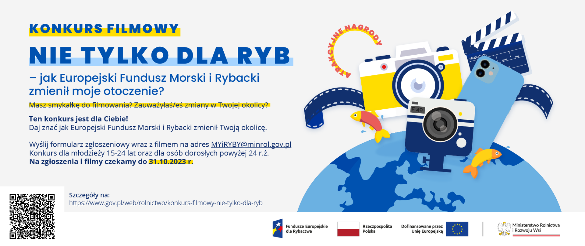 Prześlij nam swój film wraz z podpisanym formularzem zgłoszeniowym na adres e-mail: myiryby@minrol.gov.pl do 31.10.2023 r.