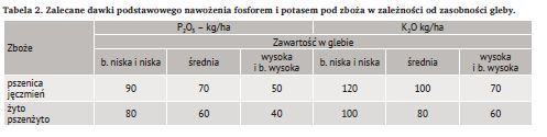 Potrzeby nawozowe zbóż ozimych w stosunku do fosforu i potasu powinny być określone na podstawie potrzeb pokarmowych wynikających z przewidywanego pobrania tych składników wraz z plonem oraz aktualnej zasobności gleby. Potrzeby pokarmowe można obliczyć, mnożąc ilość składników potrzebnych na wyprodukowanie jednostki plonu przez wielkość oczekiwanego plonu ziarna z ha, uwzględniając jeszcze zasobność gleby w te składniki.