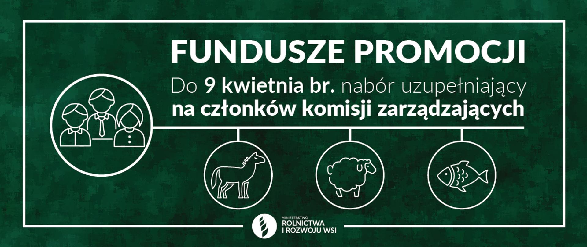 W związku ze zgłoszeniem niewystarczającej liczby kandydatów na członków komisji zarządzających Funduszu Promocji Mięsa Końskiego, Funduszu Promocji Mięsa Owczego i Funduszu Promocji Ryb na kadencję 2021-2025, Minister Rolnictwa i Rozwoju Wsi ogłasza nabór uzupełniający: