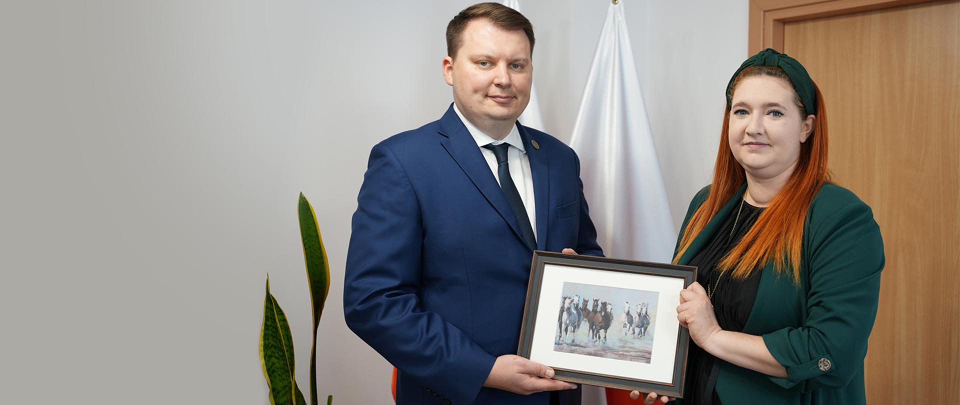 Sekretarz stanu Anna Gembicka przekazała dziś wiceprezesowi Stowarzyszenia „Paczka dla Bohatera” Piotrowi Zarzyckiemu gadżety i pamiątki.