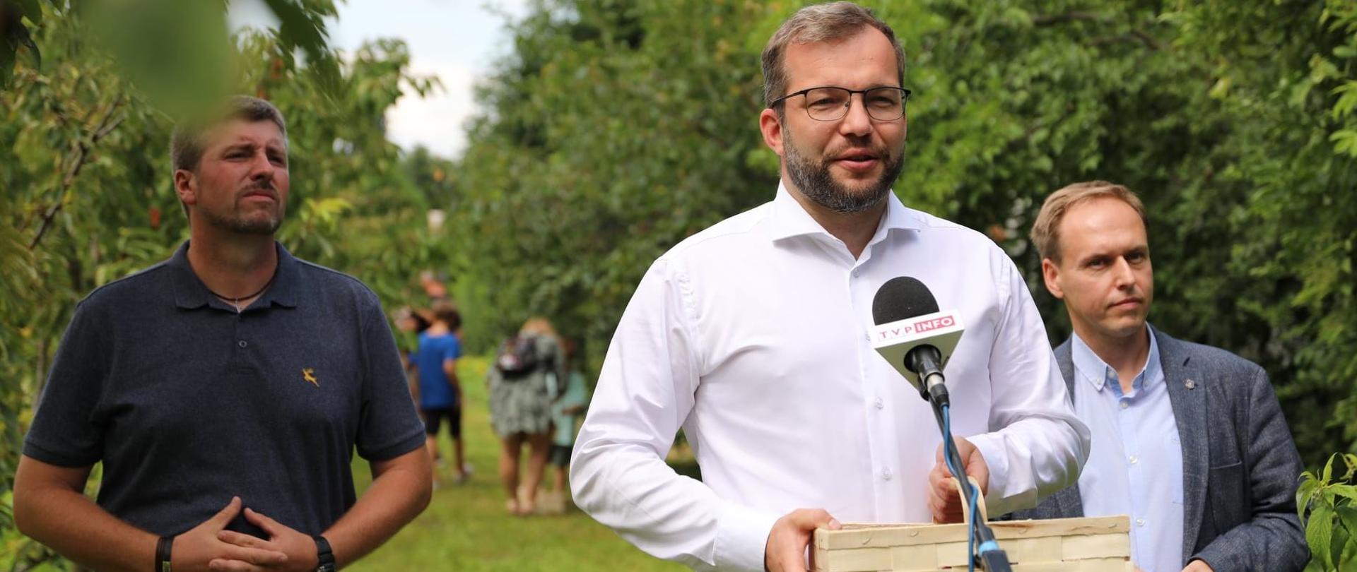 Minister Grzegorz Puda odwiedził ekologiczne, certyfikowane gospodarstwo sadownicze "Zielone Jabłuszko" w gminie Tarczyn.