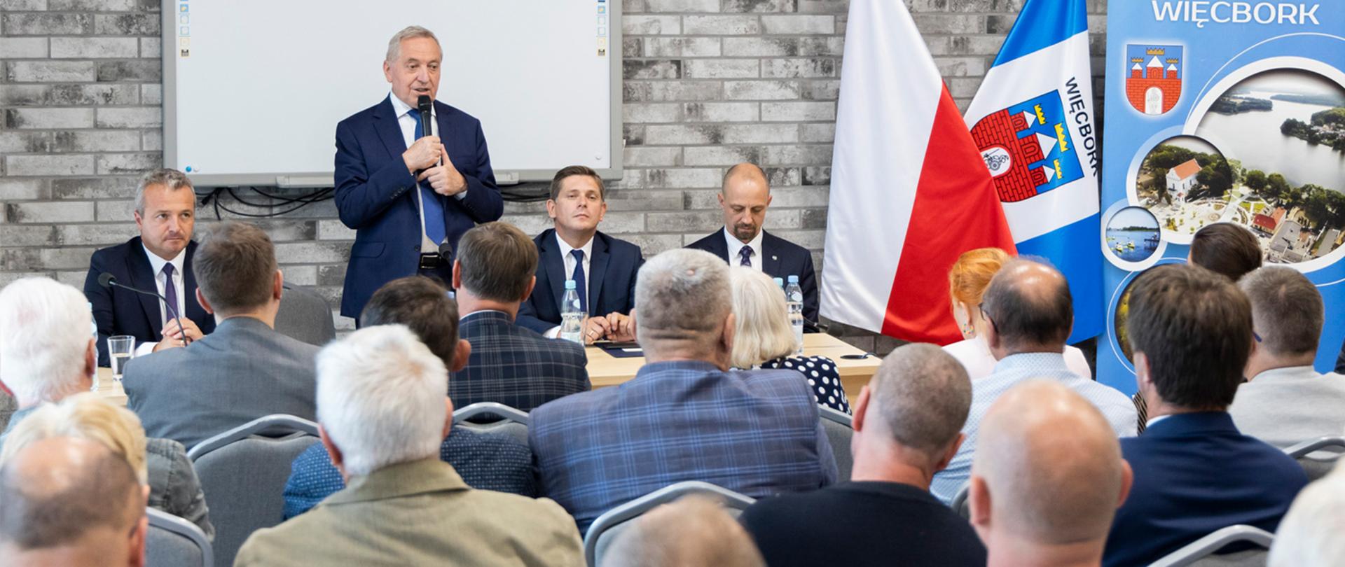 Podczas spotkania w Więcborku wicepremier Kowalczyk odpowiadał na pytania rolników dotyczące m.in. ubezpieczenia od suszy, wsparcia produkcji trzody chlewnej, stabilizacji cen nawozów czy energii odnawialnej.