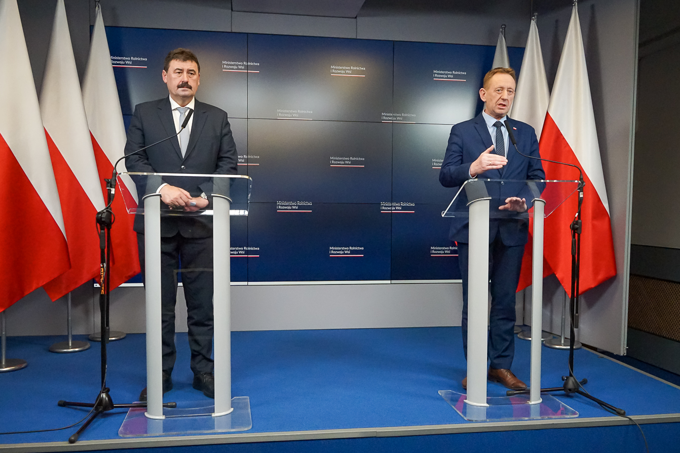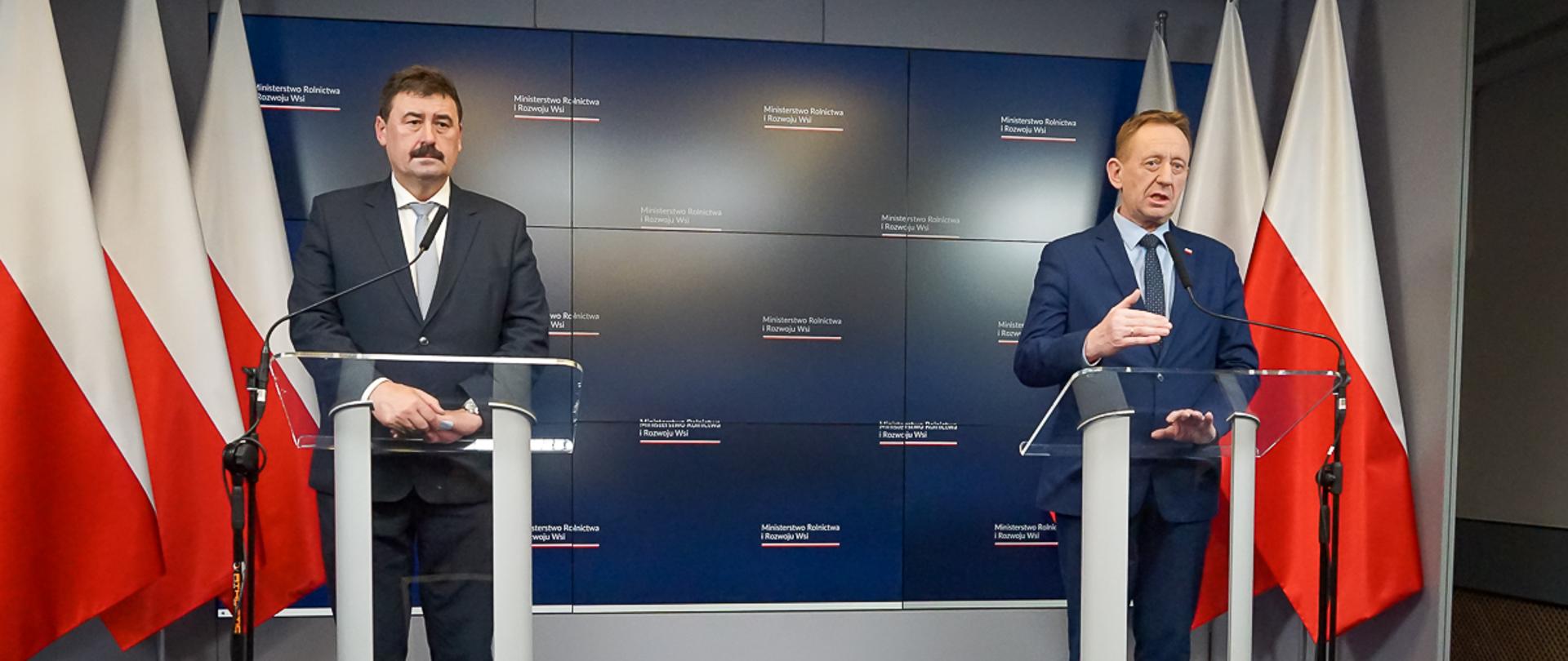 Dziś wieczorem odbył się briefing prasowy ministra rolnictwa i rozwoju wsi Roberta Telusa i sekretarza stanu Ryszarda Bartosika podsumowujący dzisiejsze obrady sztabu kryzysowego, który odbywał się w KPRM.