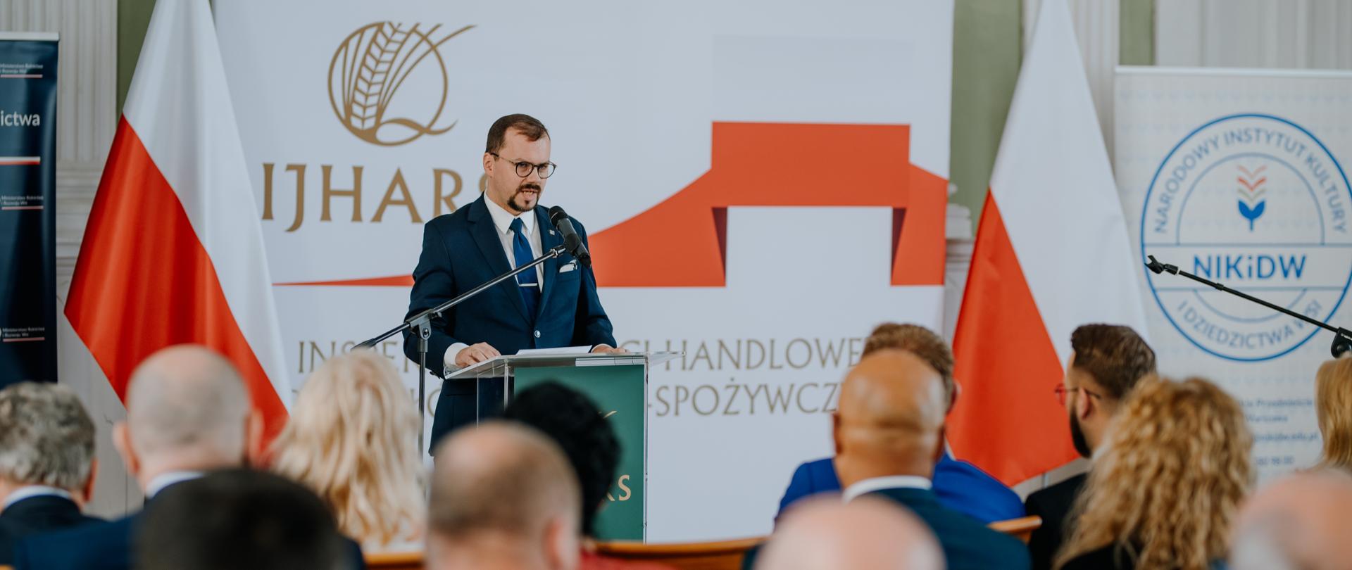 Następnie, Główny Inspektor Jakości Handlowej Artykułów Rolno-Spożywczych, Przemysław Rzodkiewicz oraz Zastępca Głównego Inspektora Jakości Handlowej Artykułów Rolno-Spożywczych, Agnieszka Sudoł, przedstawili najważniejsze sukcesy i osiągnięcia IJHARS. Warto odnotować, że zrobili to przebrani w piękne ludowe stroje, nawiązując w ten sposób do polskiej tradycji i okazując jej w ten sposób swój szacunek. Odniesień do ludowej kultury wsi było jednak podczas uroczystości więcej. Kolejnym tego przykładem był występ Zespołu Śpiewaczego Kawęczyn, który zaprezentował urozmaicony repertuar piosenek, zarówno tych bardziej, jak i mniej znanych, wprowadzając do uroczystości element uśmiechu i dobrej, wspólnej zabawy.