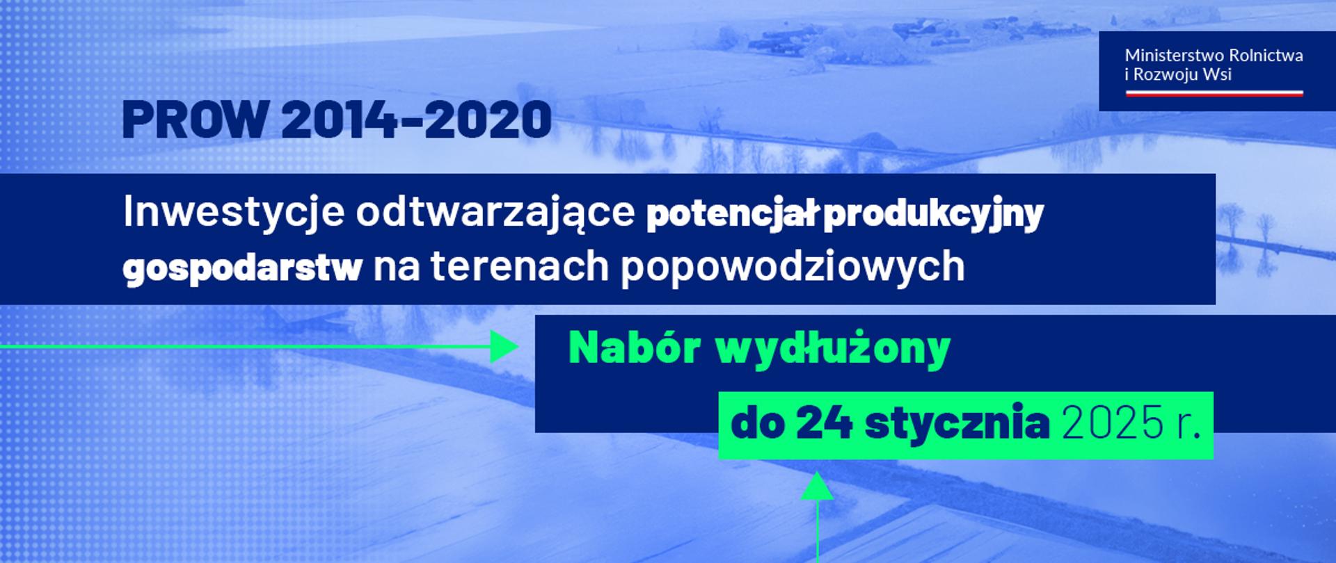 Informujemy, że do 24 stycznia 2025 r. rolnicy poszkodowani w wyniku powodzi we wrześniu 2024 r. mogą składać wnioski o pomoc do Agencji Restrukturyzacji i Modernizacji Rolnictwa (ARiMR). Wsparcie dotyczy „Inwestycji odtwarzających potencjał produkcji rolnej” w ramach Programu Rozwoju Obszarów Wiejskich 2014-2020 (poddziałanie 5.2). Wydłużenie terminu naboru umożliwi skorzystanie ze wsparcia większej grupie rolników.