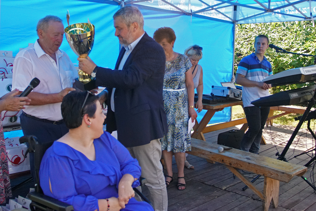 W Okoninie, w województwie kujawsko-pomorskim odbywał się dziś coroczny Piknik Integracyjny dla Osób Niepełnosprawny. Piknik ten już od 10 lat, na terenie swojego gospodarstwa organizują państwo Ewa i Ryszard Kruzińscy. – O tym wydarzeniu słyszałem już od dawna. To wspaniała impreza, którą państwo Kruzińscy organizują z potrzeby serca oraz chęci pokazania innym, jak ważna jest integracja z osobami niepełnosprawnymi, nawiązanie z nimi kontaktu i okazywanie życzliwości – powiedział minister rolnictwa i rozwoju wsi Jan Krzysztof Ardanowski, który był dziś w Okoninie. Państwo Ewa i Ryszard Kruzińscy to rolnicy, którzy prowadzą blisko 130 hektarowe gospodarstwo rolne specjalizujące się w chowie trzody chlewnej w cyklu zamkniętym. Gospodarstwo posiada nowoczesne obiekty inwentarskie, w których stosowane są najnowsze technologie i rozwiązania techniczne zapewniające dobrostan zwierząt, a także wysokie standardy produkcji. Natomiast wyposażenie w nowoczesny sprzęt uprawowy pozwala na systemowe stosowanie kompleksowych technologii w produkcji roślinnej. Gospodarstwo ma także przydomową oczyszczalnię ścieków i indywidualne ujęcie wody. – To jedni z najlepszych rolników w Polsce. Są laureatami „AgroLigi” i wielu ważnych konkursów takich jak „Rolnik Farmer Roku”, „Bezpieczne Gospodarstwo Rolne” czy „Rolnik Pomorza i Kujaw”. Dla mnie jest ważne, że można się od nich uczyć rzemiosła rolniczego, prawdziwej sztuki rolniczej. Ale nie mniej ważne jest to, że dzielą się swoim sercem z innymi, że biorą czynny udział w różnych inicjatywach społecznych – podkreślił minister Ardanowski. Szef resortu rolnictwa podkreślił, że takie postawy tworzą liderów naszych małych ojczyzn, a podejście do osób z różnymi ograniczeniami, jakie prezentują państwo Kruzińscy zasługuje na najwyższy szacunek i uznanie. – Tyle po nas pozostanie, na ile dobra uczynimy, na ile w ludzkiej pamięci przetrwamy – powiedział minister Ardanowski wręczając gospodarzom okazjonalny puchar.