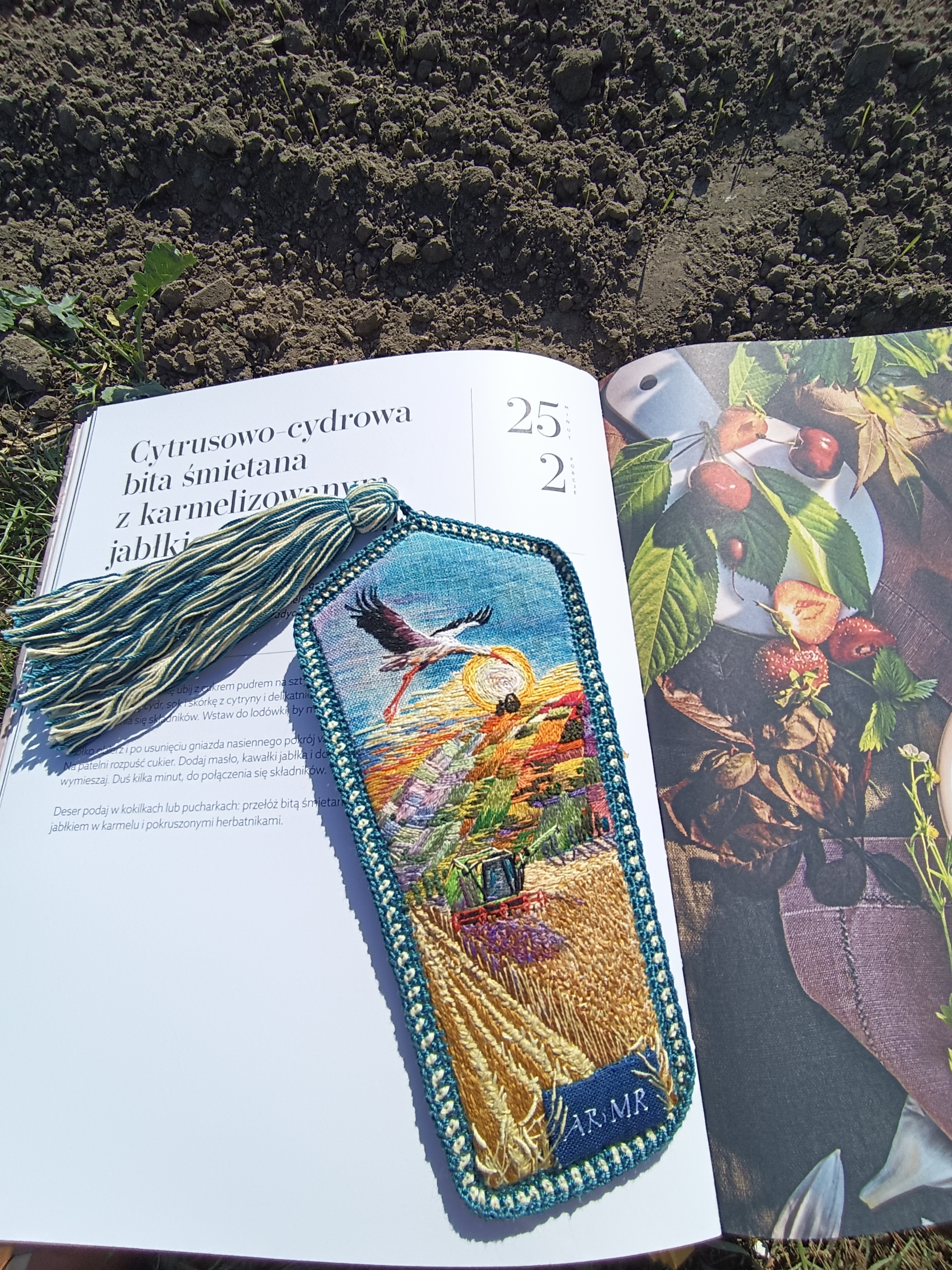 II miejsce: Koło Gospodyń Wiejskich „Marianki” w Marianowie (woj. wielkopolskie) – Zakładka do książki wykonana na lnianym podkładzie metodą haftu malarskiego.