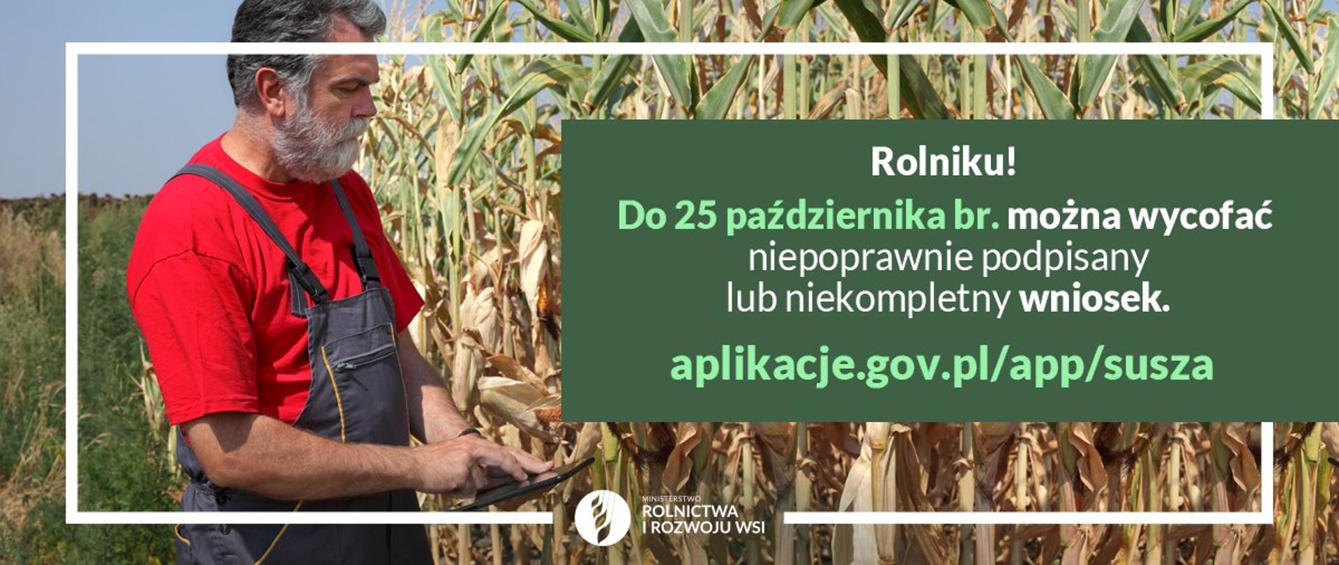 Dotyczy to wniosków nieprzetworzonych przez aplikację „Zgłoś szkodę rolniczą” aplikacje.gov.pl/app/susza/.